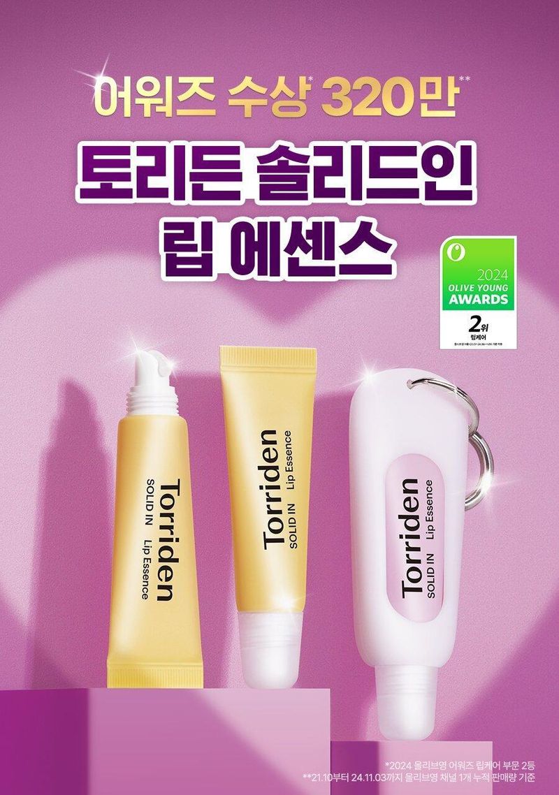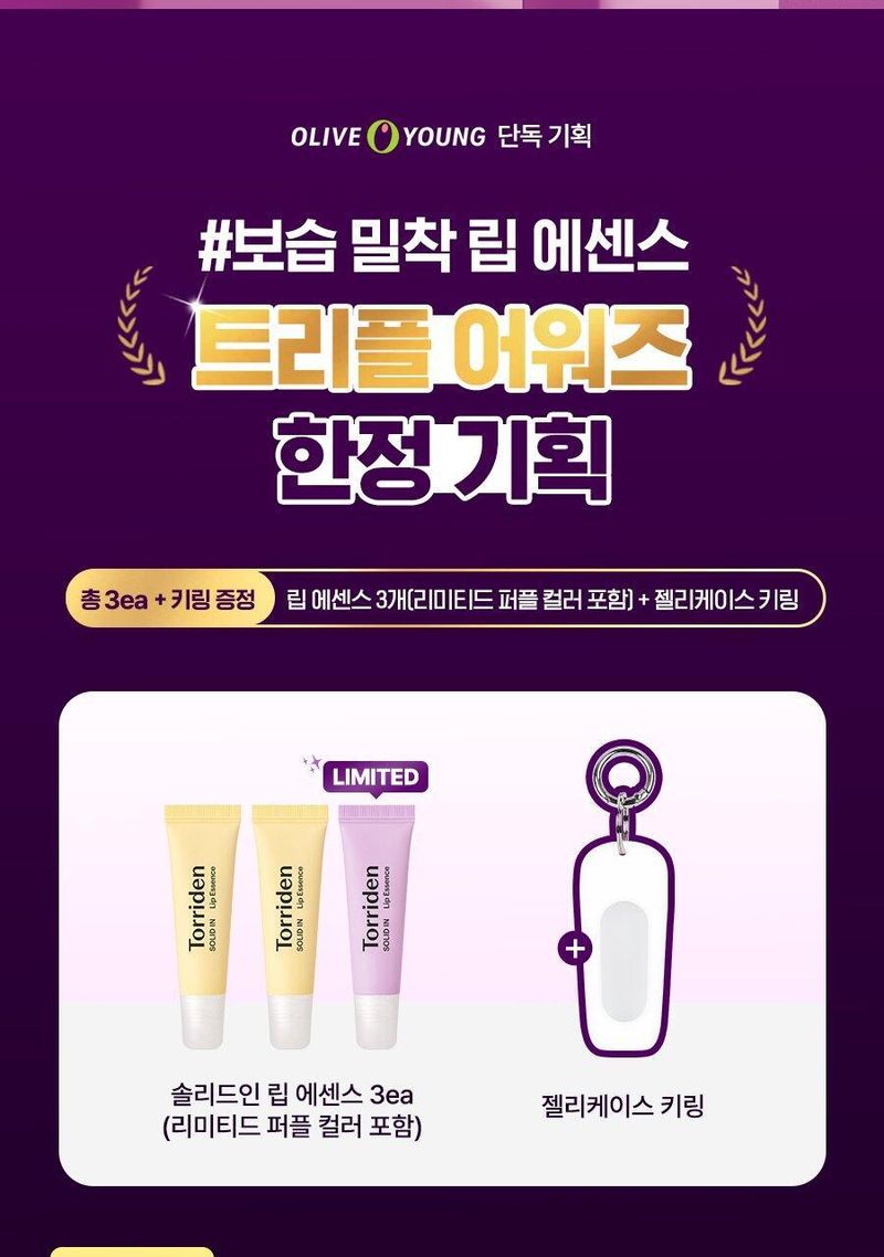 (24.12.01 ~ 25.01.31) 韓國 Olive Young 特別優惠套裝★2024年獎項★ Torriden Solid In Lip Essence 神經醯胺純素唇部精華液 11ml 三重限量版 (+鑰匙圈)