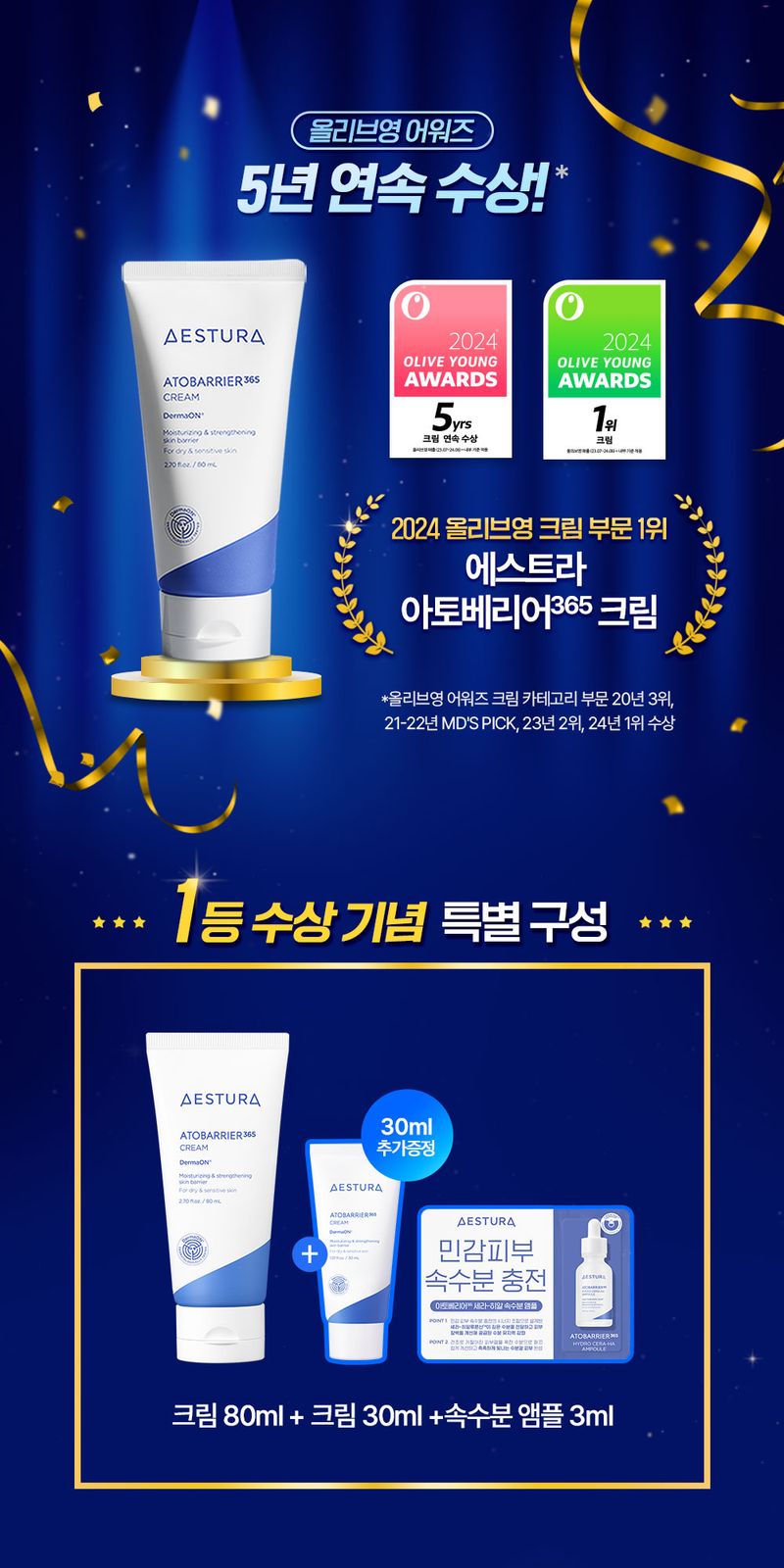 (24.12.01 ~ 24.12.30) 韓國 Olive Young 特別優惠套裝 Aestura Atobarrier 365 Cream 神經酰胺保濕舒緩面霜 80ml +30ml ( +Cera-Hyal 保濕安瓶 3ml)