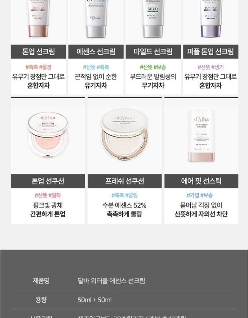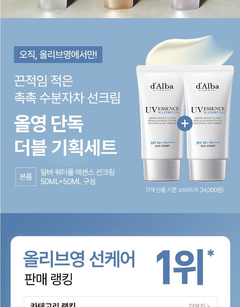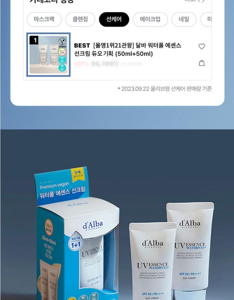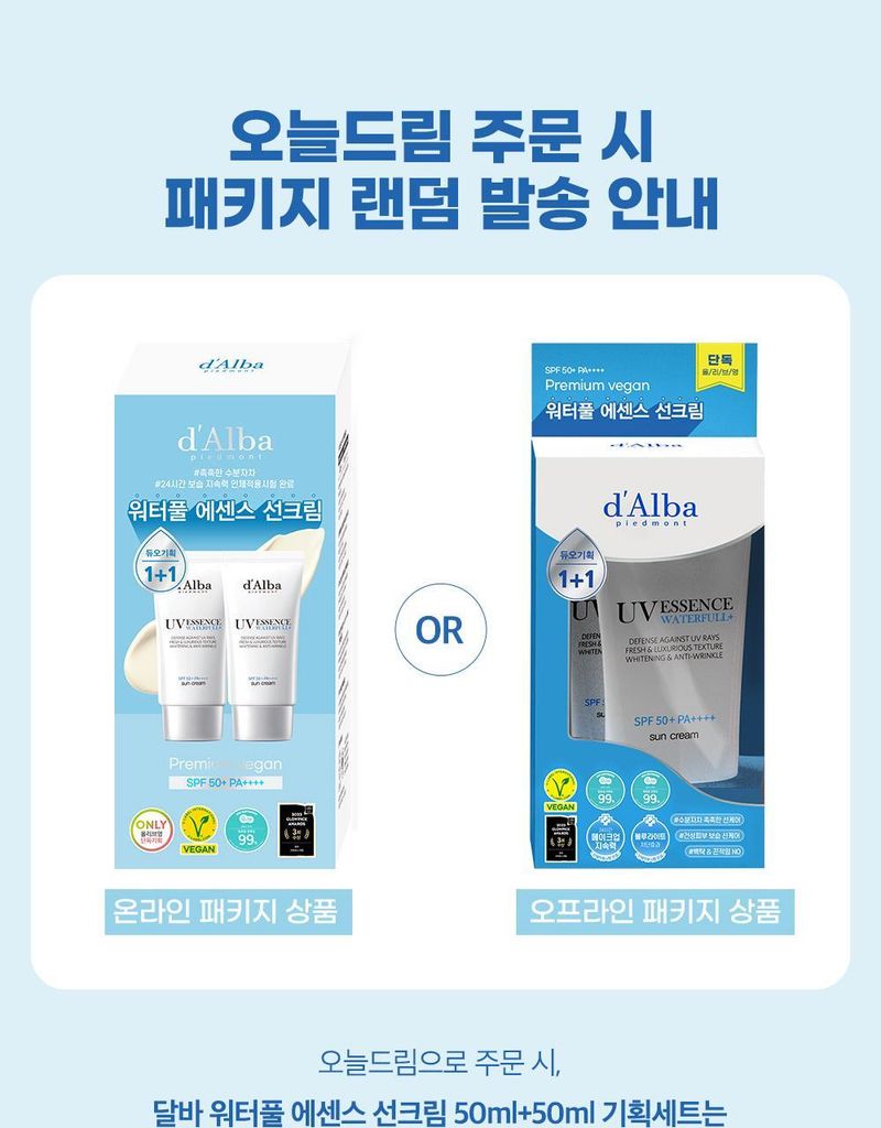 (24.11.01 ~ 24.12.30) 韓國 Olive Young 特別優惠套裝D’Alba Waterfull Essence Sun Cream 水潤精華防曬 50ml (1+1特別套裝)